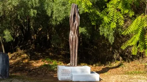Τούτο το Μνημείο της ΚΕ του ΚΚΕ, που υψώνεται σαν κίονας από μια μάζα ανθρώπινων σωμάτων σε ανάταση, στέκει πλέον ολόρθο στον χρόνο, να θυμίζει σε όλους τη θυσία τους, που τους έβαλε στο πάνθεον των ηρώων του λαού μας και του Κόμματός του, του ΚΚΕ. Το τελευταίο έργο του γλύπτη Βασίλη Δωρόπουλου, ο οποίος δυστυχώς έφυγε από τη ζωή πριν δει το έργο του στον φυσικό του χώρο, με τα πλεγμένα σώματα να ορθώνονται, σε ανάταση, σαν σε σφιχτή υψωμένη γροθιά που προσπαθεί να αγγίξει τον ουρανό, ρίζωσε στον τόπο αυτό, θέλοντας να εκφράσει την τελική δικαίωση και νίκη των αγωνιστών.