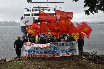 «Απ' το Λαζαρέτο στην αθανασία, στα χνάρια των ηρώων θα γράψουμε Ιστορία», το σύνθημα που δονούσε την ατμόσφαιρα, από την αναχώρηση ακόμα στο λιμάνι της Κέρκυρας. Δυο δρομολόγια χρειάστηκαν για τη μεταφορά όλων των προσκυνητών που απέτισαν τον δέοντα φόρο τιμής, με τις κόκκινες σημαίες και τα πανό, με τα συνθήματα να δυναμώνουν όσο το πλοίο προσέγγιζε τη μικρή αυτή νησίδα με τη βαριά Ιστορία.