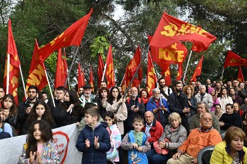 Ακολούθησε η κατάθεση στεφάνων. Εκ μέρους της ΚΕ του ΚΚΕ στεφάνι κατέθεσε ο ΓΓ της ΚΕ του Κόμματος, Δημήτρης Κουτσούμπας, εκ μέρους του ΚΣ της ΚΝΕ το μέλος του ΚΣ, Γρηγόρης Μακρής, και εκ μέρους της ΠΕΑΕΑ - ΔΣΕ ο αντιπρόεδρός της, Νίκος Βάγιας.