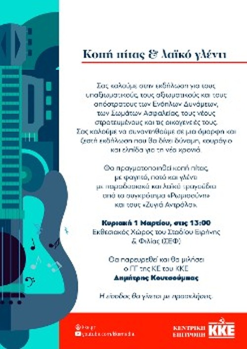 Θα παρευρεθεί και θα μιλήσει ο ΓΓ της ΚΕ του ΚΚΕ, Δημήτρης Κουτσούμπας.
