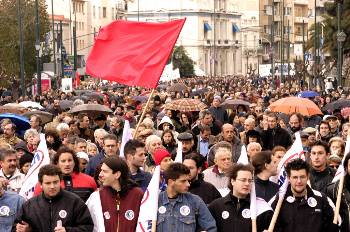 Τι σημαίνει αυτό; Αυτό σημαίνει ότι προσπαθεί να σύρει το εργατικό κίνημα και να το υποτάξει στη στρατηγική του κεφαλαίου, κρατώντας τα προσχήματα με ορισμένες επιμέρους προτάσεις - «μαϊντανό» στη γενική κατεύθυνση της αντιλαϊκής πολιτικής. Επομένως, δεν έχει καμιά βάση η θέση που προβάλλουν ορισμένες δυνάμεις για συμπόρευση με τη ΓΣΕΕ και την ΑΔΕΔΥ. «Συμπόρευση» σημαίνει συγκάλυψη, διευκόλυνση της τακτικής που στηρίζει την πολιτική που καταργεί βασικά εργασιακά, κοινωνικά - ασφαλιστικά, μισθολογικά δικαιώματα των εργαζομένων. «Συμπόρευση» σημαίνει, π.χ., συνενοχή στην προσπάθεια που κάνει ο εργοδοτικός - κυβερνητικός συνδικαλισμός για να συγκαλύψει τις ευθύνες της κυβέρνησης που βρέθηκε στο πλευρό των Αμερικανοβρετανών ιμπεριαλιστών στον πόλεμο ενάντια στο Ιράκ.