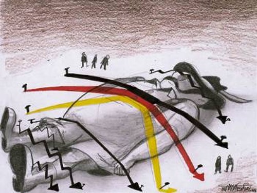 Καθρέφτης (έστω και λίγο παραμορφωτικός) της καπιταλιστικής κρίσης είναι το Χρηματιστήριο. Από την άποψη αυτή, η πορεία των χρηματιστηριακών δεικτών καταγράφει το εύρος και το βάθος της κρίσης που πλήττει τα τρία μεγάλα κέντρα (ΗΠΑ, Ιαπωνία και Ευρωπαϊκή Ενωση).