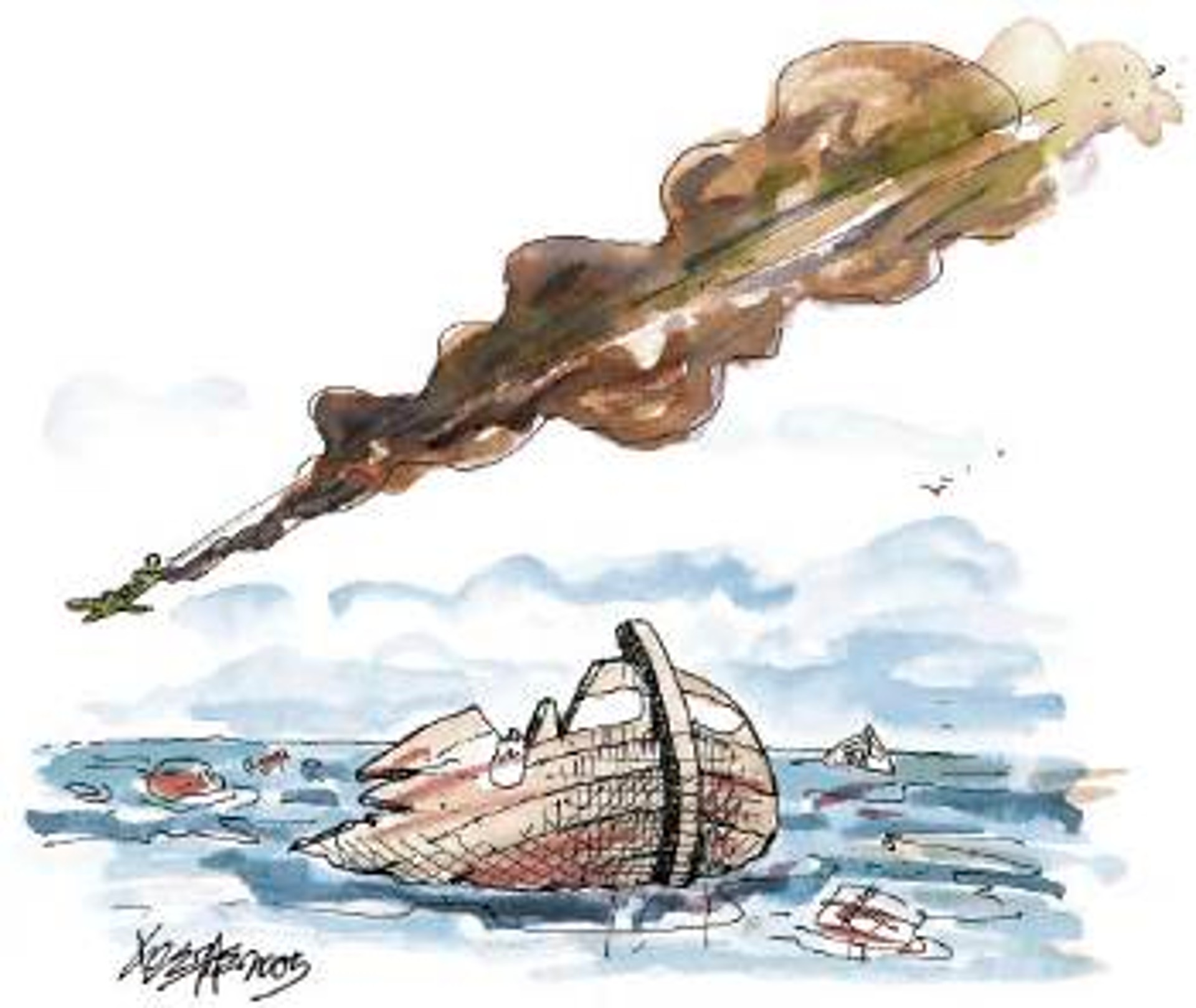 Το αγγλικό αεροπλάνο ήρθε ξανά και ξανά αποφασισμένο θαρρείς να μην αφήσει τίποτα που να επιπλέει στο μικρό κόρφο, διαψεύδοντας κάποιους χωρικούς που απέδωσαν την πρώτη του επιδρομή σε λάθος του πιλότου που κατέβαινε τόσο χαμηλά που θα 'λεγε κανείς ότι προτίθεται να προσθαλασσωθεί μετατρέποντάς το σε ...υδροπλάνο! Μια του κλέφτη δυο του κλέφτη, που λέει ο λαός, ένας Ιταλός καραμπινιέρος τού έστησε ενέδρα και μόλις πρόβαλε αμέριμνος ο χειριστής, που θα μπορούσε κάποιος ν' αποτυπώσει και τα χαρακτηριστικά του ακόμη, δέχτηκε τη ριπή πολυβόλου από τον σκοπευτή, που έκοψε το νήμα της ζωής του! Ηταν ένα ολόξανθο παλικάρι που, οι δικοί του δεν ξαναείδαν πια, που μπλέχτηκε στα γρανάζια του πολέμου και νόμισε ότι μπορούσε να παίξει μαζί του...