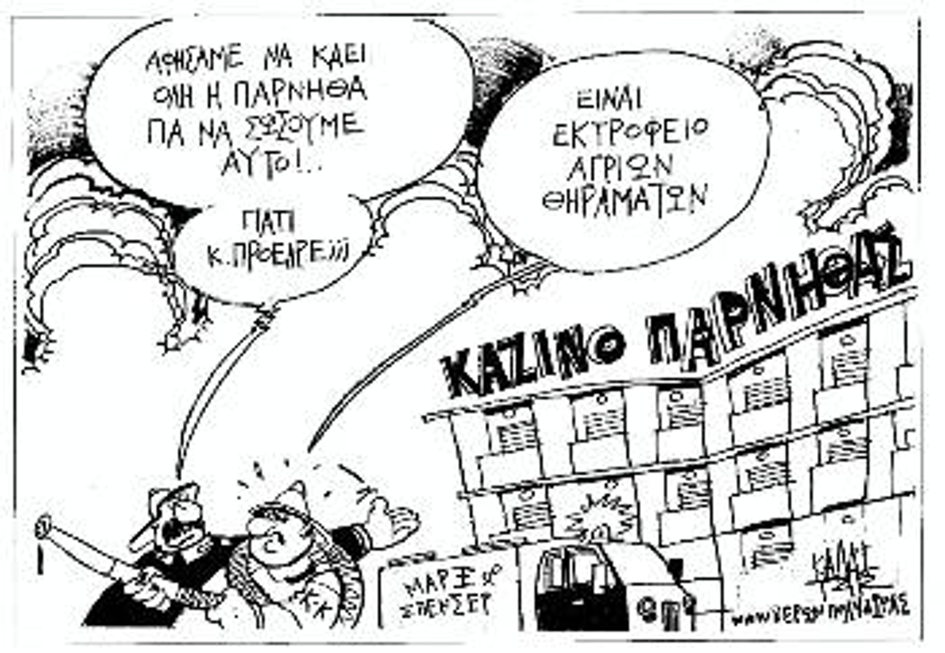 Επί των ημερών του ενός (1991, 1992, 1993, 2004, 2005) κάηκαν 157.885 στρέμματα δάσους στην Αττική και αναδασώθηκαν 17.376. Δηλαδή 9 καίγονται, ένα αναδασώνεται!