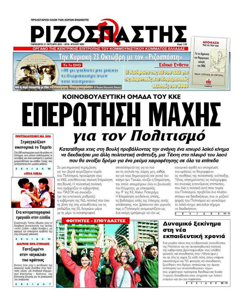 Σε μια σημαντική παρέμβαση, για τον βαριά χειμαζόμενο τομέα του Πολιτισμού, προχώρησε χτες το ΚΚΕ, καταθέτοντας σχετική Επερώτηση στη Βουλή. Η πολιτιστική πολιτική που εφάρμοζαν οι κυβερνήσεις του ΠΑΣΟΚ και συνεχίζει (με πιο εντατικούς ρυθμούς) η κυβέρνηση της ΝΔ, πολιτική που έχει τη βάση της στις κατευθύνσεις και τις επιδιώξεις της ΕΕ, διογκώνει μέρα με τη μέρα τα καταστροφικά αποτελέσματά της για το λαό και τη νεολαία της χώρας μας, καθώς και για τους δημιουργούς και γενικά τον κόσμο των τεχνών, τονίζει η Επερώτηση, την οποία υπογράφουν όλοι οι βουλευτές του Κόμματος, με επικεφαλής τη ΓΓ της ΚΕ, Αλέκα Παπαρήγα.