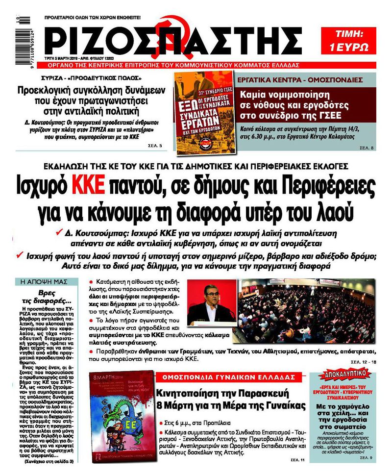 Η θέση των πραγματικών προοδευτικών, όλων των αγωνιστών, ριζοσπαστών, είναι πλάι στο ΚΚΕ. Για να έρθουν οι λαϊκές ανάγκες στο προσκήνιο, για να δυναμώσει ο πόλος της ελπίδας, του αγώνα, της αντεπίθεσης, σε σύγκρουση με το σάπιο σύστημα που γεννά τη φτώχεια, τον πόλεμο, το φασισμό, και το οποίο υπηρετούν από κοινού «προοδευτικές» και «συντηρητικές» αστικές πολιτικές δυνάμεις.