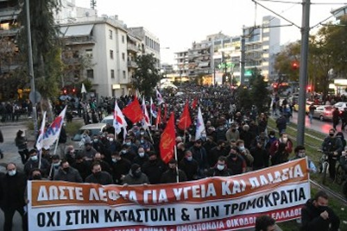 Με βασικό στόχο να επιβάλει σιγή νεκροταφείου ενώ περνά σωρεία αντεργατικών και αντιλαϊκών νομοθετημάτων υπέρ του κεφαλαίου, ο πρωθυπουργός κατέφυγε στη δαιμονοποίηση των λαϊκών κινητοποιήσεων, υποστηρίζοντας ότι σε αυτή τη συγκυρία οι «μαζικές συνάξεις» είναι «γεγονός - υπερμεταδότης» για τον κορονοϊό, και ότι μπροστά στο «αγαθό της διαμαρτυρίας» υπερτερεί το «αγαθό της ανθρώπινης ζωής». Ολα αυτά ενώ εδώ και πάνω από ένα χρόνο η κυβέρνηση αρνείται να πάρει ουσιαστικά μέτρα θωράκισης της δημόσιας Υγείας, με τις αναγκαίες μόνιμες προσλήψεις υγειονομικών, τους αναγκαίους ελέγχους σε ΜΜΜ και χώρους δουλειάς, την επίταξη χωρίς αποζημιώσεις στους κλινικάρχες των ιδιωτικών δομών Υγείας και άλλα μέτρα.