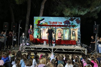 Η ομάδα θεάτρου κούκλας της Παραμυθοχώρας, με τις Μαρία και Σπυριδούλα Παπαγεωργίου, ζωντάνεψαν την «Πόλη που έδιωξε τον πόλεμο», του Αντώνη Παπαθεοδούλου, στον Παιδότοπο το βράδυ του Σαββάτου.