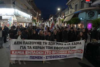 «Η Ελευσίνα είναι λιμάνι των λαών και όχι ορμητήριο των ιμπεριαλιστών», «Ούτε γη ούτε νερό στους φονιάδες των λαών» και άλλα συνθήματα δονούσαν την ατμόσφαιρα στο κέντρο της εργατούπολης, με σωματεία και φορείς από Δυτική Αττική και Πειραιά να πραγματοποιούν μαζική πορεία στους κεντρικούς δρόμους.