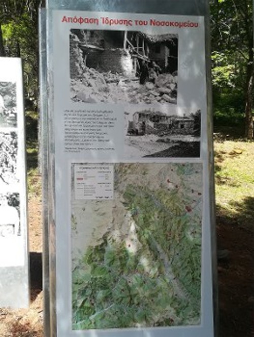 Ανεβαίνοντας τον δρόμο και τα μονοπάτια, ο επισκέπτης ανακαλύπτει βήμα βήμα την ιστορία του νοσοκομείου. Από τη σύνδεση με τα κινητά ορεινά χειρουργεία, την απόφαση κατασκευής του νοσοκομείου και τις εργασίες που την υλοποίησαν, με τη συμβολή 150 κτιστών, μαραγκών και άλλων ειδικών ώστε να φτάσει στη δυνατότητα στην αιχμή της λειτουργίας του να περιθάλψει πάνω από 5.000 τραυματίες, σώζοντας χιλιάδες μαχητές και μαχήτριες από βέβαιο θάνατο.