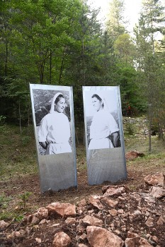 Πάνω στα δύο ατσάλινα πάνελ που στέκουν στο υψηλότερο σημείο, δεσπόζουν οι φωτογραφίες από δύο κοπέλες, νοσοκόμες της Υγειονομικής Υπηρεσίας του ΔΣΕ. Η πρώτη «φοράει» στο πρόσωπο ένα ελπιδοφόρο χαμόγελο. Η διπλανή της απαθανατίστηκε με καθαρό, ευθύ βλέμμα, με ζωγραφισμένη αποφασιστικότητα στο πρόσωπό της. Δύο εικόνες χαρακτηριστικές, που αναδεικνύουν την ατσάλινη θέληση, την ελπιδοφόρα μάχη για το δίκιο του αγώνα του λαού που έδωσαν ηρωικά μέσα από τις γραμμές του ΔΣΕ χιλιάδες άλλες γυναίκες σαν αυτές τις δύο, χιλιάδες μαχητές και μαχήτριες στα πεδία των μαχών.