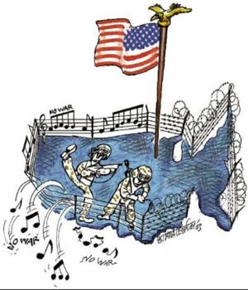 Πολλοί καλλιτέχνες στις ΗΠΑ, παρά τις πιέσεις που ασκούνται, συνεχίζουν να υψώνουν φωνή διαμαρτυρίας κατά του πολέμου ενάντια στο λαό του Ιράκ, να γράφουν αντιπολεμικά τραγούδια, να διαδηλώνουν μέσα στην ίδια τη φωλιά του «θηρίου», εκεί που ο νεομακαρθισμός βρίσκεται στο απόγειό του. Μετά το πλήθος των απαγορεύσεων μετάδοσης αντιπολεμικών τραγουδιών την περίοδο του πολέμου στον Κόλπο, το 1991, ακολούθησε την επίθεση στους «δίδυμους πύργους» η επαίσχυντη μαύρη λίστα των απαγορευμένων τραγουδιών, για τους σταθμούς της χώρας της «ελευθερίας». Εμπάργκο που συνεχίζει να φιμώνει δεκάδες καλλιτέχνες, στερώντας τους το δικαίωμα έκφρασης και παρουσίασης τραγουδιών τους με αντιπολεμικό περιεχόμενο, ιδιαίτερα σήμερα με τον πόλεμο στο Ιράκ ΣΕΛ. 4