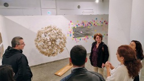 Την εικαστική έκθεση της Χρύσας Κοφίνα «Ανάδρομο ευχολόγιο. Wish no more», που από την πρώτη στιγμή τράβηξε το ενδιαφέρον των Θεσσαλονικέων, επισκέφτηκε το απόγευμα της Δευτέρας αντιπροσωπεία των Οργανώσεων Κεντρικής Μακεδονίας του ΚΚΕ και της ΚΝΕ με επικεφαλής την Θεανώ Καπέτη, μέλος του ΠΓ της ΚΕ του Κόμματος, τον Δημήτρη Παπατολίδη, μέλος της ΚΕ, και τον Γιάννη Βασιλειάδη, μέλος του Γραφείου του ΚΣ της ΚΝΕ. Μέσα από την έκθεση η δημιουργός θέλει να στείλει το μήνυμα «τέρμα οι ευχές, καιρός για δράση». Η έκθεση αναπτύσσεται σε δύο αλληλένδετους άξονες: Την εικόνα της γυναίκας ως φορέα κληρονομιάς, μνήμης και αντοχής, και τη σκληρή πραγματικότητα του πολέμου και των κοινωνικών συγκρούσεων....