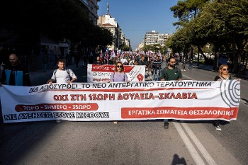 Με επόμενους μεγάλους σταθμούς τον αγωνιστικό γιορτασμό της επετείου από τον ξεσηκωμό του Πολυτεχνείου και τις κινητοποιήσεις ενάντια στον νέο αντιλαϊκό προϋπολογισμό, τα εργατικά σωματεία της Θεσσαλονίκης, με παρακαταθήκη την πολύτιμη πείρα από την προηγούμενη δράση τους και τις δύο μεγάλες απεργίες, μπαίνουν «στα γεμάτα» στη μάχη για την υπεράσπιση των σύγχρονων δικαιωμάτων και αναγκών του εργαζόμενου λαού: Για ΣΣΕ, σταθερό και συνεχή ημερήσιο χρόνο εργασίας, 7ωρο - 5ήμερο - 35ωρο, για μεγάλες αυξήσεις στους μισθούς, στις συντάξεις, στις κοινωνικές παροχές, για μέτρα υγείας και ασφάλειας στους χώρους δουλειάς, για άμεσα μέτρα ενάντια στην ακρίβεια, ενάντια στη συμμετοχή της χώρας μας...