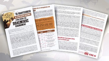 Σε μια περίοδο που «τα τύμπανα του πολέμου ηχούν ολοένα και πιο δυνατά» και που οξύνονται καθημερινά οι ιμπεριαλιστικές αντιπαραθέσεις, οι Οργανώσεις του ΚΚΕ και της ΚΝΕ στο Εθνικό Μετσόβιο Πολυτεχνείο με μια τετρασέλιδη ανακοίνωσή τους αναδεικνύουν πώς η επιστημονική έρευνα και η πανεπιστημιακή εκπαίδευση αξιοποιούνται σε αυτήν τη ζοφερή πραγματικότητα της πολεμικής οικονομίας και προετοιμασίας. Στην ανακοίνωση αναφέρουν, μεταξύ άλλων: «Αυτή η προετοιμασία δεν θα μπορούσε να αφήσει άθικτη την επιστημονική έρευνα και την πανεπιστημιακή εκπαίδευση, αφού ο πολεμικός ανταγωνισμός έχει ανάγκη από νέα πιο καταστροφικά όπλα, νέες διττής χρήσης υποδομές, νέες πανταχού παρούσες υπηρεσίες...
