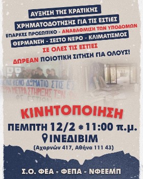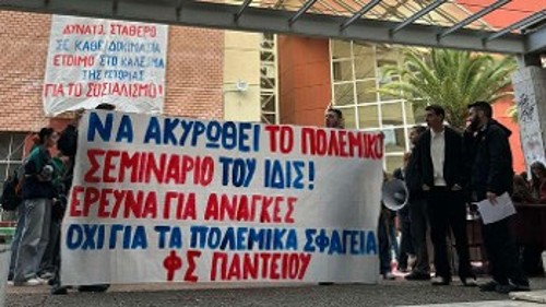 Απαιτώντας να ακυρωθεί το πολεμικό σεμινάριο «Ο πόλεμος στον σύγχρονο κόσμο: Στρατηγική, οπλικά συστήματα και τακτικές», ο Φοιτητικός Σύλλογος Παντείου προχωρά σήμερα στις 12 το μεσημέρι σε νέα κινητοποίηση, στην έδρα του Ινστιτούτου Διεθνών Σχέσεων (ΙΔΙΣ) στην Πλάκα. Το ΙΔΙΣ, το ερευνητικό ινστιτούτο του Παντείου, διοργανώνει μέσα στον Μάρτη το συγκεκριμένο «επιμορφωτικό σεμινάριο» και ο Φοιτητικός Σύλλογος του Παντείου από την πρώτη στιγμή εξέφρασε την αντίθεσή του, εντάσσοντάς το στις εξελίξεις στα πανεπιστήμια οι οποίες φανερώνουν την πρόθεση να γίνουν αυτά κομμάτι της πολεμικής προετοιμασίας. «Οπως θέλουν τους φοιτητές και τους ερευνητές στο Πολυτεχνείο και στο ΠΑΔΑ να φτιάχνουν όπλα...