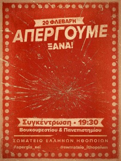 Σήμερα είναι η μεγάλη απεργία των ηθοποιών. Μαζί τους απεργούν και οι μουσικοί, οι τεχνικοί και όλοι οι εργαζόμενοι στα θέατρα. Στην τρίτη κατά σειρά απεργία τους μέσα σε λίγους μήνες το ΣΕΗ μαζί με όλο τον κλάδο απαιτεί υπογραφή Συλλογικής Σύμβασης Εργασίας με τις δύο μεγάλες εργοδοτικές ενώσεις του κλάδου (ΠΕΘ, ΕΝΘΕΠΑ), πρόβες πληρωμένες με πλήρη ασφαλιστική κάλυψη, αύξηση μισθού. Με χθεσινή του ανακοίνωση το ΣΕΗ ενημερώνει ότι τα ποσοστά της απεργίας ήδη ξεπερνούν το 75%! Οπως σημειώνει: «Απεργούμε γιατί ζητάμε τα αυτονόητα. Την υπογραφή μιας Συλλογικής Σύμβασης Εργασίας που να εξασφαλίζει τα εργασιακά μας δικαιώματα. - Πληρωμένες και ασφαλισμένες πρόβες. - Εξασφαλισμένη διάρκεια...