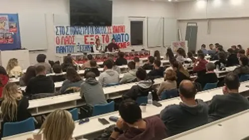 Με μαζική συμμετοχή φοιτητών, μαθητών και νέων εργαζομένων πραγματοποιήθηκαν οι πολιτικές εκδηλώσεις του ΚΚΕ και της ΚΝΕ στην Κρήτη, σε Ηράκλειο, Χανιά και Ρέθυμνο, με ομιλητή τον Θοδωρή Κωτσαντη, Γραμματέα του ΚΣ της ΚΝΕ, και σύνθημα «Στο στόχαστρο οι βάσεις, σε κίνδυνο ο λαός - Εξω το ΝΑΤΟ, παντού ξεσηκωμός». Οι εκδηλώσεις αποτέλεσαν σημαντικό σταθμό στην αποφασιστική πολιτική παρέμβαση των Οργανώσεων του Κόμματος και της ΚΝΕ στον πολεμικό όλεθρο που βρίσκεται σε εξέλιξη στη Μέση Ανατολή και τους κινδύνους από την ελληνική εμπλοκή, ειδικά στην Κρήτη, με την ύπαρξη της αμερικανοΝΑΤΟικής βάσης στη Σούδα. Στόχος είναι να υπάρξει ενημέρωση και να δυναμώσει η κινητοποίηση του λαού και της...