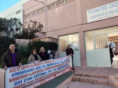 Με πολύμορφες δράσεις, με πλατιά συζήτηση με τους γονείς των μαθητών, εκπαιδευτικά σωματεία Πρωτοβάθμιας Εκπαίδευσης σε όλη τη χώρα ανέδειξαν το ζήτημα της εργασιακής εξουθένωσης και απαξίωσης του εκπαιδευτικού έργου, στο πλαίσιο της χτεσινής πανελλαδικής κινητοποίησης της ΔΟΕ. Η Ομοσπονδία είχε κηρύξει δίωρη στάση εργασίας και κάλεσε στις παραπάνω δράσεις, με αφορμή τον θάνατο της εκπαιδευτικού στη Θεσσαλονίκη, που φαίνεται να συνδέεται άμεσα με τις εργασιακές συνθήκες στις οποίες οι εκπαιδευτικοί καλούνται να επιτελέσουν το παιδαγωγικό τους έργο. Με πλήρη απουσία ουσιαστικής ολόπλευρης στήριξης από το κράτος των εκπαιδευτικών, των μαθητών και των γονιών τους, με τμήματα ασφυκτικά γεμάτα...