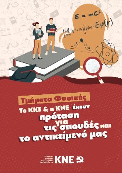 Νέα κλαδική ανακοίνωση κυκλοφόρησε η Φοιτητική Επιτροπή του ΚΣ της ΚΝΕ, στο πλαίσιο της σειράς των οκτασέλιδων ανακοινώσεων με τίτλο «Το ΚΚΕ και η ΚΝΕ έχουν πρόταση για τις σπουδές και το αντικείμενό μας», που απευθύνεται στους προπτυχιακούς φοιτητές των Τμημάτων Φυσικής. Θυμίζουμε ότι στην ίδια σειρά έχουν προηγηθεί ανακοινώσεις για τα τμήματα: Νομικής, Μαθηματικών, Φυσικής Αγωγής και Αθλητισμού (ΤΕΦΑΑ), Ιστορίας - Αρχαιολογίας, Παιδαγωγικά Δασκάλων και Προσχολικής Αγωγής, Γεωπονικών, τις Σχολές Υγείας, ενώ αναμένονται και για τα υπόλοιπα αντικείμενα σπουδών. Η ΚΝΕ αναφέρεται στα προβλήματα που συναντούν οι νέοι που περνούν με όνειρα και μεράκι στα Φυσικά Τμήματα, ξεχωρίζοντας ιδιαίτερα το...