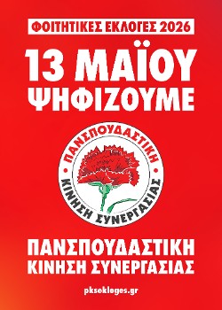 Στις 13 Μαΐου θα πραγματοποιηθούν οι φοιτητικές εκλογές σε όλους τους Συλλόγους της χώρας. Δεκάδες χιλιάδες φοιτητές και φοιτήτριες μπορούν να στείλουν δυνατό μήνυμα καταδίκης της αντιλαϊκής...