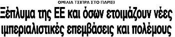 Τα πανηγύρια των επιχειρηματικών ομίλων, της αστικής τάξης, των ΑμερικανοΝΑΤΟικών και των κυβερνήσεών τους αποτελούν για εκείνον προαναγγελία «θύελλας» απέναντι στην οποία πρέπει από τώρα να πάρει τα μέτρα του, δυναμώνοντας την πάλη για απεμπλοκή από τα ιμπεριαλιστικά σχέδια.