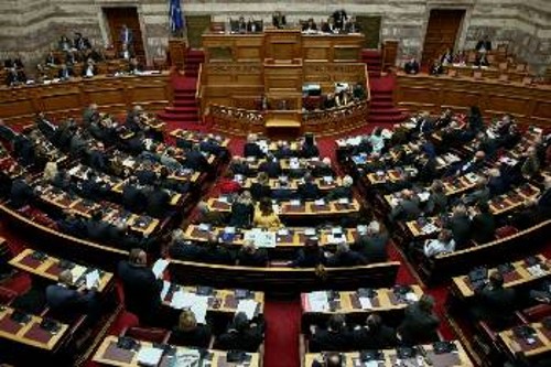 Στην Ολομέλεια της Βουλής βρίσκεται από χτες το πρωί η συμφωνία Τσίπρα - Ζάεφ, με την οποία η κυβέρνηση επιβεβαιώνει τον ρόλο της ως «αφοσιωμένου εταίρου» στην προώθηση των επικίνδυνων για τους λαούς σχεδιασμών των ΗΠΑ, ΝΑΤΟ και ΕΕ στα Βαλκάνια και την ευρύτερη περιοχή, για λογαριασμό της κερδοφορίας της εγχώριας αστικής τάξης. Η συζήτηση αναμένεται να ολοκληρωθεί απόψε μετά τα μεσάνυχτα με τη διαδικασία της ψηφοφορίας.