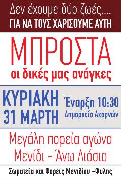 Συνεχίζοντας τις κινητοποιήσεις απέναντι στις νέες περικοπές θεραπειών παιδιών με αναπηρίες και μαθησιακές δυσκολίες, απέναντι στο σμπαράλιασμα εργασιακών σχέσεων και δικαιωμάτων των εργαζομένων στον κλάδο, ενάντια στη διάλυση της Ειδικής Αγωγής, το Σωματείο Εργαζομένων σε Μονάδες - Ιδρύματα - Σχολεία Ειδικής Αγωγής (ΣΕΜΙΣΕΑ), η Συντονιστική Επιτροπή Αγώνα Αναπήρων (ΣΕΑΑΝ) και ο Ενιαίος Σύλλογος Γονέων ΑμεΑ Αττικής και Νήσων οργανώνουν παράσταση διαμαρτυρίας στο υπουργείο Υγείας, τη Δευτέρα 1η Απρίλη στις 12 μ.
