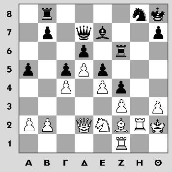 Η σημερινή θέση είναι από την παρτίδα του Αλεξάντερ Κότοβ (λευκά) εναντίον του Τιγκράν Πετροσιάν (μαύρα) για το πρωτάθλημα της ΕΣΣΔ το 1949. Σε μια πολύ σπάνια για τον ίδιο περίσταση ο μετέπειτα παγκόσμιος πρωταθλητής διαπράττει μια «αβλεψία» και χάνει σε πολύ λίγες κινήσεις.