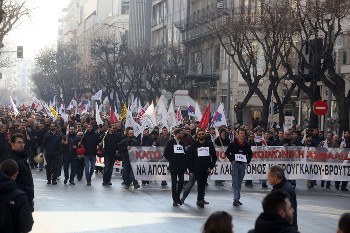 Το απεργιακό συλλαλητήριο του ΠΑΜΕ, ξεκινώντας από το Αγαλμα Βενιζέλου, κατέκλυσε τους κεντρικούς δρόμους της πόλης, με μαζικότητα που ξεπέρασε τις προσδοκίες και κατευθύνθηκε προς το υπουργείο Μακεδονίας - Θράκης. Η πορεία κατέληξε στο Εργατικό Κέντρο Θεσσαλονίκης (ΕΚΘ), όπου οι διαδηλωτές φώναξαν συνθήματα κατά του εργατοπατερισμού.