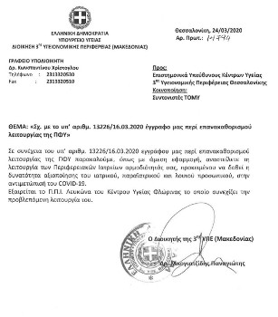 - Να εξασφαλίσει ειδικές γραμμές επικοινωνίας στον ΕΟΔΥ στις οποίες θα απευθύνονται οι γιατροί των μικρών νησιών και να ορίσει νοσοκομείο αναφοράς».