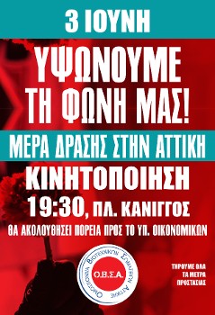Το Εργατικό Κέντρο Αρτας καλεί σε κινητοποίηση στις 11/6, στις 8 μ.μ., στην πλατεία Κιλκίς. Μια μέρα νωρίτερα, την Τετάρτη 10/6, οργανώνει συγκέντρωση - συζήτηση, στις 8 μ.μ. στην έδρα του, με ομιλητή τον Γιάννη Τασιούλα, μέλος της Εκτελεστικής Γραμματείας του ΠΑΜΕ.