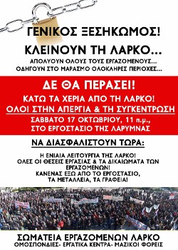 -- Σωματεία - εργαζόμενοι της ΛΑΡΚΟ: Κλιμακώνουν τον δίκαιο αγώνα τους ενάντια στο διαλυτικό σχέδιο και τις απολύσεις
