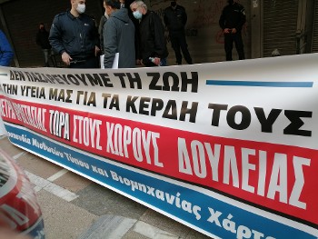 Τη συμπαράστασή τους εκφράζουν τα Σωματεία Οικοδόμων Θεσσαλονίκης και Μισθωτών Τεχνικών, Μετάλλου, Τροφίμων - Ποτών και Φαρμάκου - Καλλυντικού Κεντρικής Μακεδονίας.