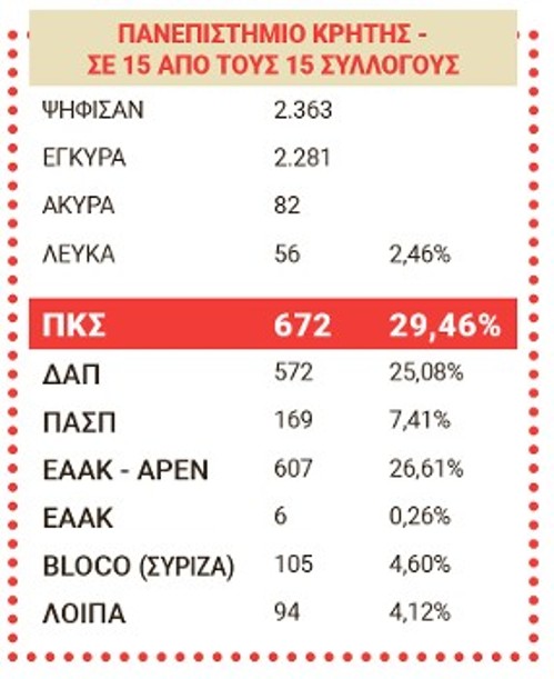 Εστειλαν ξεκάθαρο μήνυμα καταδίκης της κυβερνητικής πολιτικής, που δεν έδωσε ούτε ένα ευρώ για την ασφαλή λειτουργία των ιδρυμάτων ενώ ταυτόχρονα νομοθετούσε την ένταση της καταστολής εντός των πανεπιστημίων, και τώρα ετοιμάζει νέο νόμο για την Ανώτατη Εκπαίδευση ο οποίος θα διευρύνει την επιχειρηματική τους λειτουργία, την υποβάθμιση των σπουδών και τα πτυχία πολλών ταχυτήτων. Ενα μήνυμα που εκφράστηκε όχι μόνο με την ενίσχυση της «Πανσπουδαστικής», αλλά και με τη μεγάλη απώλεια δυνάμεων της κυβερνητικής παράταξης, της ΔΑΠ, η οποία ήταν η μόνη που αρνήθηκε να δεχτεί το αποτέλεσμα των φοιτητικών εκλογών. Ολες οι άλλες παρατάξεις στα αποτελέσματα που έδωσαν αποτυπώνουν την πρωτιά της «Πανσπουδαστικής», αλλά η ΔΑΠ ισχυρίστηκε ότι παραμένει εκείνη πρώτη δύναμη, δίνοντας στη δημοσιότητα νοθευμένα στοιχεία, κι αυτά για μόλις ...109 συλλόγους από τους 274 πανελλαδικά!