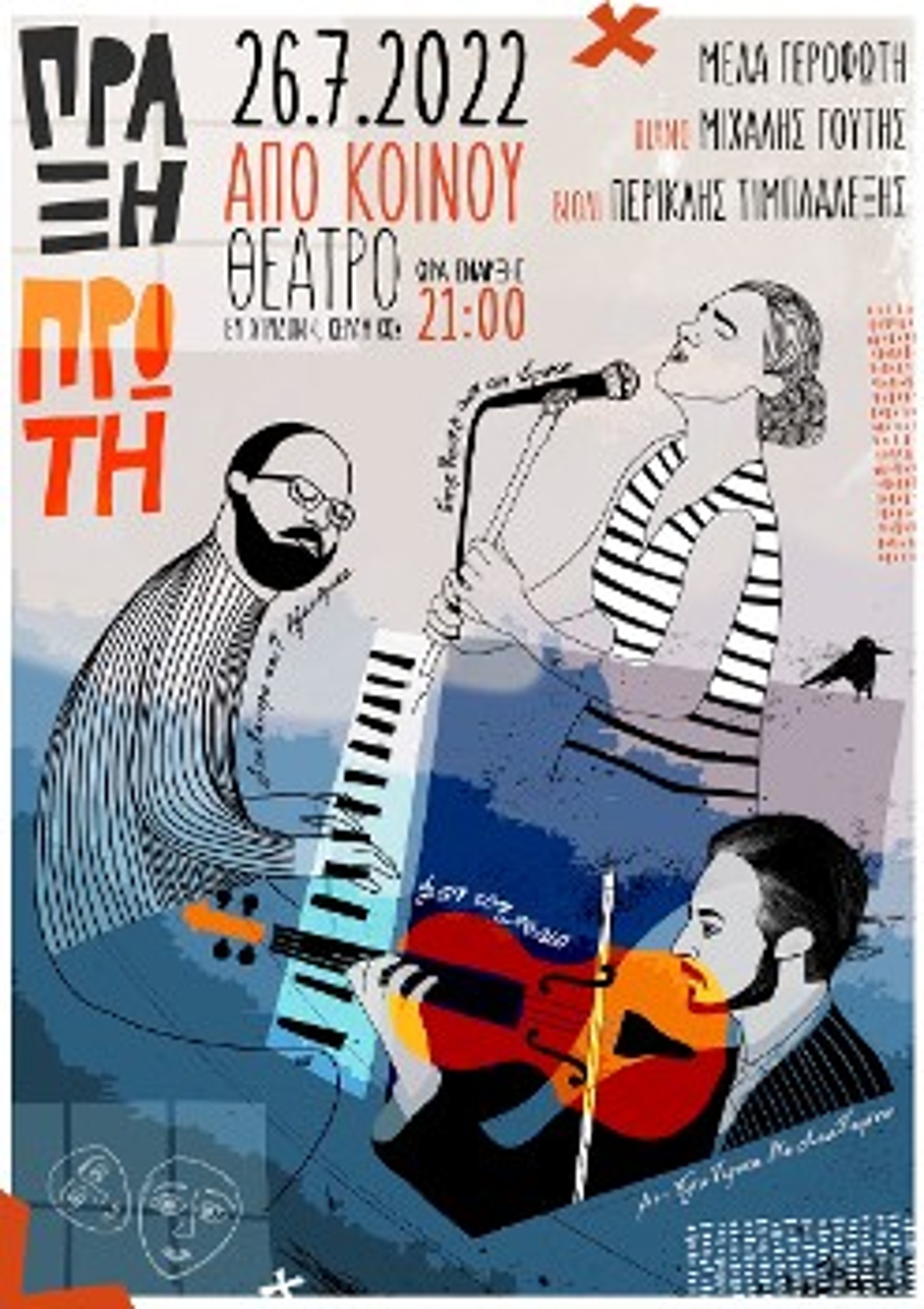 Ερμηνεία - κείμενα: Μέλα Γεροφώτη. Ενορχηστρώσεις - διασκευές - πιάνο: Μιχάλης Γούτης. Βιολί: Περικλής Τιμπλαλέξης. Επιμέλεια αφίσας: Ζάννα Κατσαφάνα.