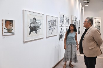 Συζήτησαν για τα έργα που εκτίθενται, με την αφετηρία των περισσότερων, που δημιουργήθηκαν τα τελευταία χρόνια, να είναι ο «εγκλεισμός» σε καταυλισμούς και στρατόπεδα συγκέντρωσης που βιώνουν χιλιάδες άνθρωποι, θύματα των πολέμων, των ανταγωνισμών, μετανάστες και πρόσφυγες. Αντίστοιχα της τελευταίας τριετίας είναι η πλειοψηφία των έργων που αναφέρονται στην Παλαιστίνη. Πρόθεση ήταν να καταδειχθεί μια άλλη διάσταση της έννοιας του «εγκλεισμού». Του αναγκαστικού εγκλεισμού που ζουν τα παιδιά της Παλαιστίνης σε στρατόπεδα, σε καταυλισμούς και σε μικρές διάσπαρτες κουκκίδες γης, παιδιά που στερούνται το δικαίωμά τους στη ζωή, στην ελευθερία. Παράλληλα εκτίθενται και έργα με θέμα τη φύση, με αφορμή τη «φωτιά στο δάσος», όπως στην Εύβοια ή στη Δαδιά, αλλά και διάφορες δημιουργίες της τελευταίας δεκαετίας.