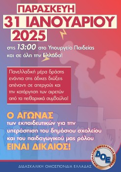 Σε κοινή καταγγελία με τους Συλλόγους Εκπαιδευτικών «Αλέξανδρος Δελμούζος», Ανατ. Αττικής «Κώστας Σωτηρίου», Γλυφάδας - Βάρης - Βούλας - Βουλιαγμένης, που επίσης καλούν στην αυριανή κινητοποίηση, απαιτούν «να σταματήσουν τώρα η βιομηχανία διώξεων και οι απειλές» και αναδεικνύονται μια σειρά από τέτοια κρούσματα απέναντι σε εκπαιδευτικούς.