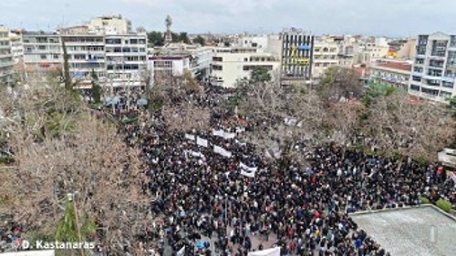 Πριν δυο χρόνια, ο λαός στη Λάρισα συγκλονιζόταν από το πολύνεκρο έγκλημα με τη σύγκρουση των δύο τρένων στα Τέμπη, λίγο έξω από την πόλη. Την Παρασκευή, ο λαός της συγκλονίστηκε από τη μεγαλειώδη απεργιακή συγκέντρωση, όπου δεκάδες χιλιάδες λαού βρέθηκαν οργανωμένα στον δρόμο του αγώνα, βροντοφωνάζοντας για άλλη μια φορά: «'Η οι ζωές μας ή τα κέρδη τους».