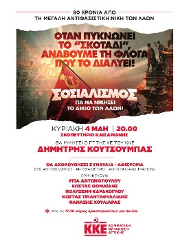 Σε αυτές τις συνθήκες, πρόσθεσε, «αποκτήσαμε πολλούς νέους συντρόφους και συντρόφισσες, στην πλειοψηφία τους μισθωτοί και παιδιά εργατικής - λαϊκής καταγωγής και ένταξης, που έκαναν το μεγάλο και περήφανο βήμα να συνδέσουν τη ζωή τους με την πάλη για μια νέα κοινωνία, τον σοσιαλισμό - κομμουνισμό! Τους καλωσορίζουμε θερμά και μέσα από τη σημερινή μας εκδήλωση!