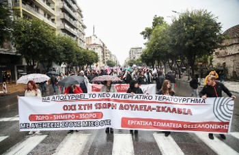 Και, μετά το τέλος της πορείας, μπροστά στο υπουργείο Μακεδονίας - Θράκης, ανακοίνωσαν την κλιμάκωση του αγώνα με νέα απεργία όταν η κυβέρνηση φέρει το νομοσχέδιο στη Βουλή για ψήφιση.