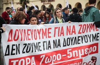 Κεντρικός ομιλητής ήταν ο Δημήτρης Μπελόπουλος, πρόεδρος της Ενωσης Εμποροϋπαλλήλων ν. Θεσσαλονίκης. Αναφερόμενος στο νομοσχέδιο, το χαρακτήρισε «επιτομή της επίθεσης του κεφαλαίου στον εργάσιμο χρόνο». «Ερχεται στην πράξη να νομιμοποιήσει κάθε εργοδοτική αυθαιρεσία που έχει να κάνει με το ωράριο, με το ρεπό, τις άδειες, τον χρόνο διαλείμματος, τον ενεργό και ανενεργό χρόνο εργασίας», σημείωσε, προειδοποιώντας ότι «με μαθηματική ακρίβεια θα αυξηθούν τα εργατικά "ατυχήματα" στους χώρους δουλειάς».