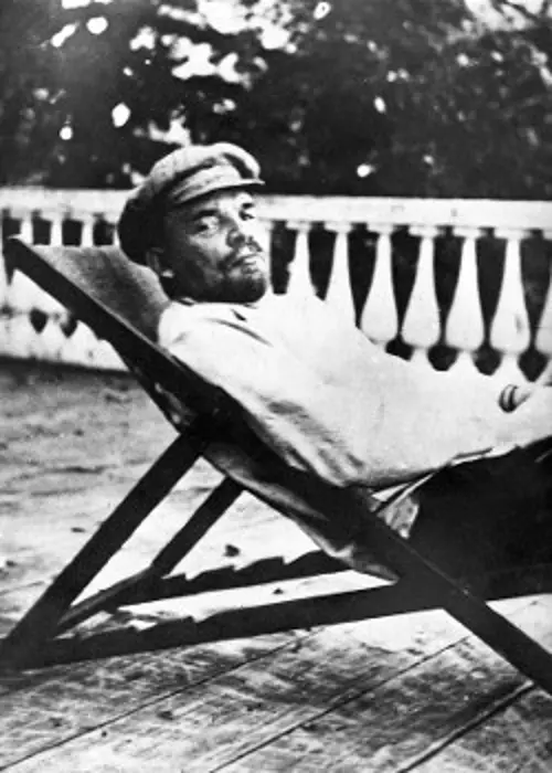 Ο ηγέτης επαναστάτης πάνω σε τεθωρακισμένο στις 25 Οκτώβρη 1917, όπως ζωγραφικά τον απέδωσε ο Μ. Μ. Μπερίγκοφ (1923)