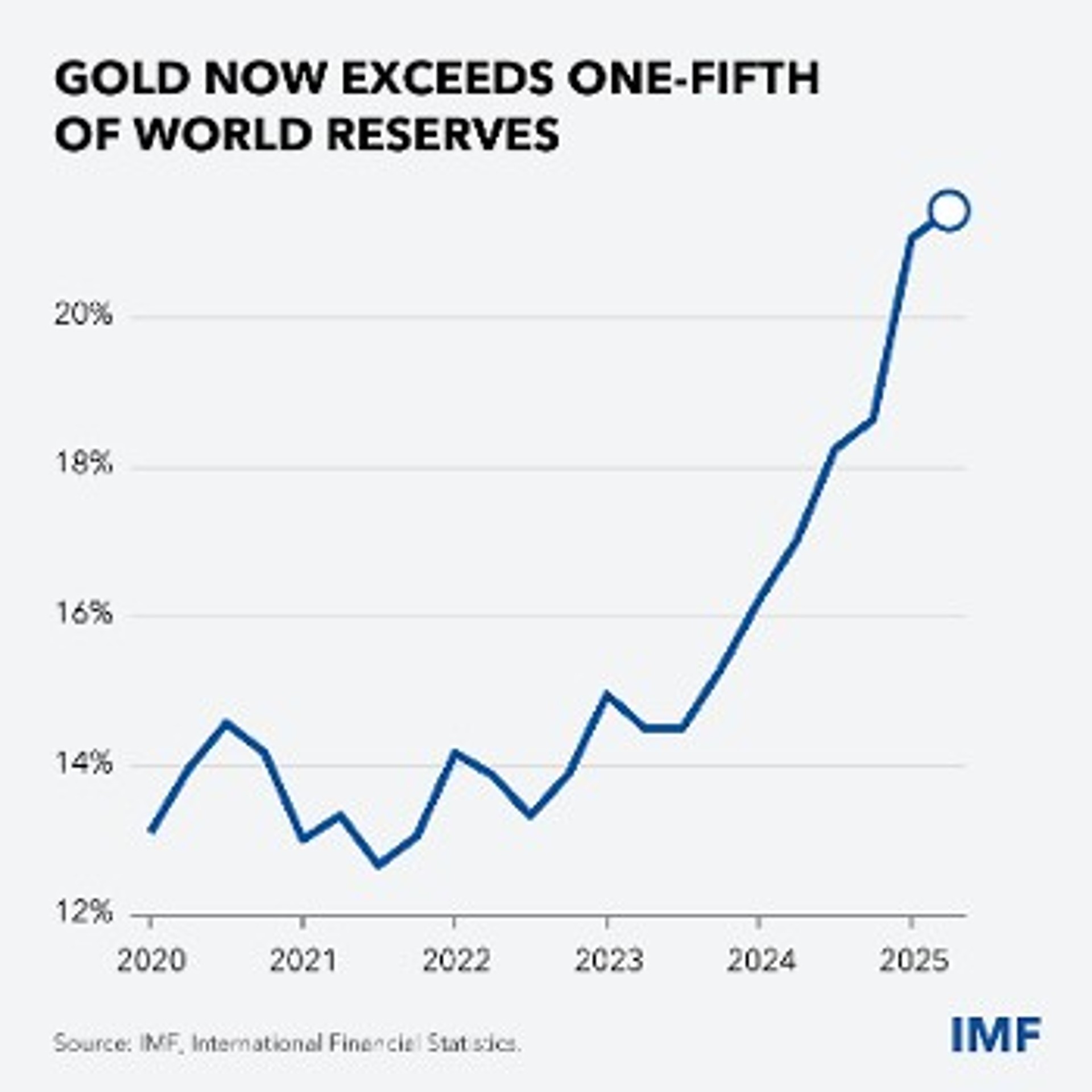 Σε πέντε χρόνια το μερίδιο του χρυσού έφτασε στο 20% στο παγκόσμιο αποθεματικό με αύξηση κατά... 100%, «απηχώντας εν μέρει γεωπολιτικούς παράγοντες», την ένταση δηλαδή των ανταγωνισμών |