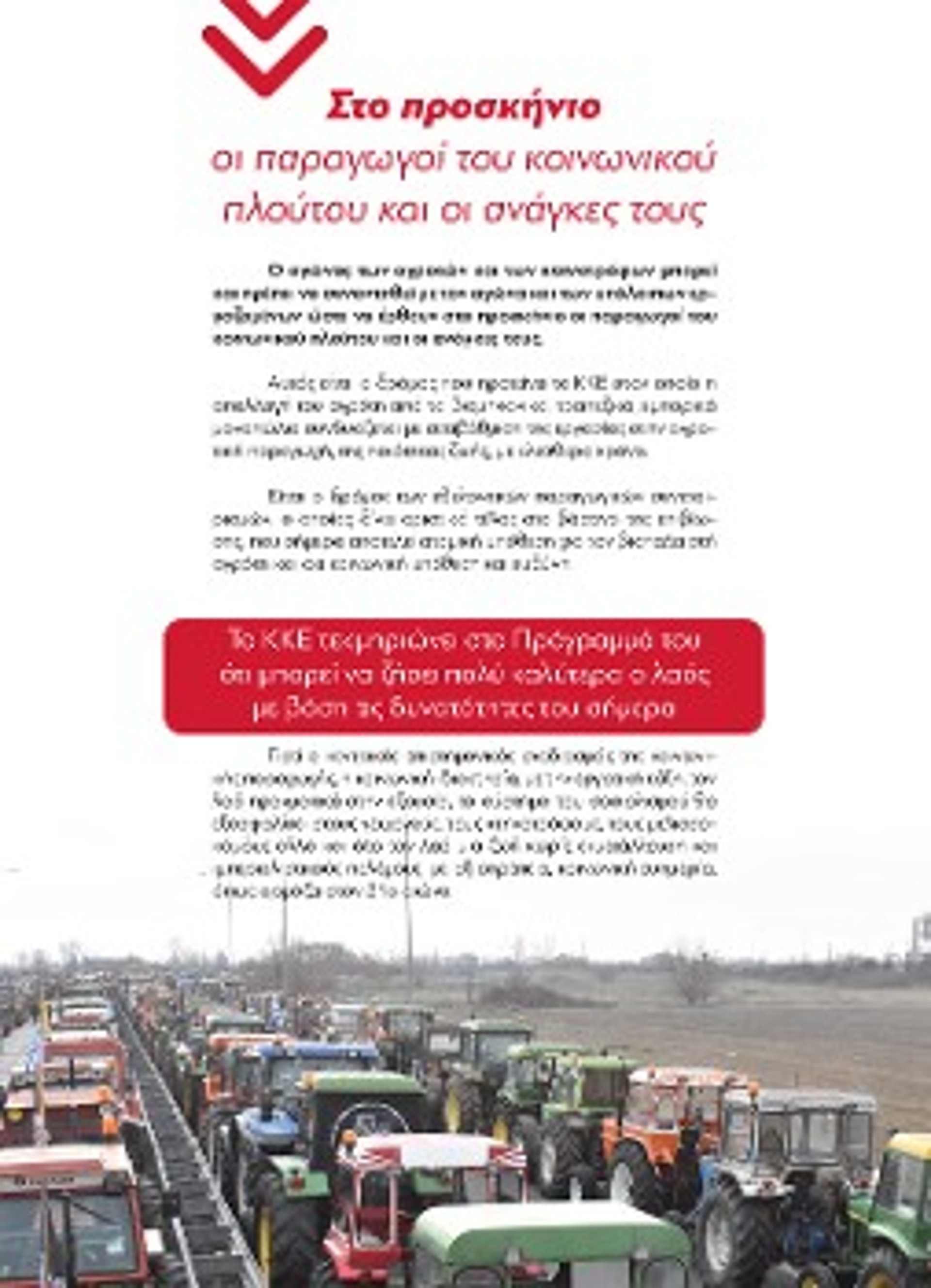 Γιατί ο κεντρικός επιστημονικός σχεδιασμός της κοινωνικής παραγωγής, η κοινωνική ιδιοκτησία, με την εργατική τάξη, τον λαό πραγματικά στην εξουσία, το σύστημα του σοσιαλισμού, θα εξασφαλίσει στους γεωργούς, στους κτηνοτρόφους, στους μελισσοκόμους, σε όλο τον λαό μια ζωή χωρίς εκμετάλλευση και ιμπεριαλιστικούς πολέμους, με αξιοπρέπεια και κοινωνική ευημερία, όπως αρμόζει στον 21ο αιώνα.