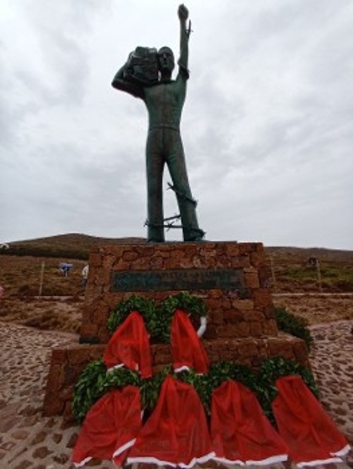 Μέλη του ΔΣ της ΠΕΚΑΜ ξενάγησαν τους επισκέπτες σε μνημεία της Μακρονήσου, ανάμεσά τους το Μνημείο που έχει τοποθετήσει η ΚΕ του ΚΚΕ.