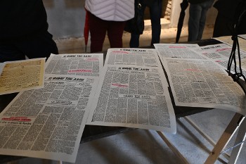 Στο κτίριο του παλιού λοιμοκαθαρτηρίου παρουσιάστηκε έκθεση εικαστικών, αρχειακού υλικού και ντοκουμέντων για το Λαζαρέτο. Στην έκθεση φιλοξενήθηκαν, μεταξύ άλλων, η μακέτα του έργου του Κερκυραίου εικαστικού Αγγελου Γερακάρη, που απέσπασε το 3ο βραβείο στον καλλιτεχνικό διαγωνισμό της ΚΕ του ΚΚΕ που προκηρύχτηκε το 2022, καθώς και έργο του Κερκυραίου ζωγράφου Γιώργου Παπαβλασόπουλου. Παρουσιάστηκε επίσης το συλλογικό εικαστικό έργο σε πανί της ομάδας «Κόκκινο Αερόστατο», «Με το αίμα μου το δέντρο να ποτίσω», με τα τελευταία λόγια του 19χρονου Κώστα Χριστοφίδη, εκτελεσμένου στο Λαζαρέτο. Εκτέθηκαν ακόμη δύο μακέτες του Κερκυραίου Στέφανου Ριζικάρη, που αποτυπώνουν τις φυλακές της Κέρκυρας και τη νησίδα Λαζαρέτο. Αντίγραφα από φύλλα της εφημερίδας «Η Φωνή του Λαού», έντυπο όργανο του ΕΑΜ Κέρκυρας, έφεραν στον χώρο τον λόγο και τα τεκμήρια της εποχής. Από το πρώτο μισάωρο ο χώρος γέμισε: Στην πρώτη αίθουσα, μπροστά στην εγκατάσταση με τις ξύλινες σανιδολωρίδες κειμένου και το κόκκινο ύφασμα στο μεταλλικό πλέγμα, επισκέπτες διάβαζαν δυνατά φράσεις δείχνοντας με το χέρι λέξη - λέξη, ενώ άλλοι φωτογράφιζαν από κοντά σφραγίδες και υπογραφές.