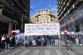 «Πτυχία με αξία, δωρεάν σπουδές - Οχι καταστολή και διαγραφές» ήταν το μήνυμα των φοιτητών της Αθήνας, που συμμετείχαν μέσα από τα πανό των συλλόγων τους.