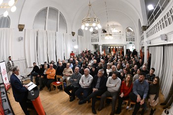 Σε μια κατάμεστη αίθουσα στο κτίριο της Ελληνικής Πολιτιστικής Στέγης στη Στοκχόλμη πραγματοποιήθηκε το βράδυ του Σαββάτου η πολιτική συγκέντρωση της Τομεακής Οργάνωσης Σκανδιναβίας, με θέμα: «Ενάντια στην αντιλαϊκή πολιτική και την πολεμική προετοιμασία, με τους κομμουνιστές μπροστά, στον αγώνα για την ανατροπή, για τον σοσιαλισμό», με ομιλητή τον ΓΓ της ΚΕ του ΚΚΕ, Δημήτρη Κουτσούμπα. Τον κόσμο «υποδεχόταν» ένα τραπεζάκι με την ΚΟΜΕΠ, εκδόσεις της «Σύγχρονης Εποχής» σε Ελληνικά και Αγγλικά, οι Θέσεις της ΚΕ για το 22ο Συνέδριο του Κόμματος κ.ά.
