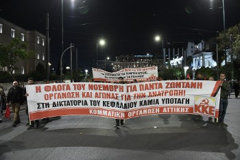 Ηταν τόσο μεγάλη η διαδήλωση του ΚΚΕ και της ΚΝΕ, ένα μεγάλο ποτάμι που «απλωνόταν» στη Βασ. Σοφίας, με αγωνιστές από κάθε γενιά να στέκονται ώμο με ώμο, με τις κόκκινες σημαίες να ανεμίζουν ψηλά, επιβεβαιώνοντας τον επίκαιρο χαρακτήρα των συνθημάτων και των αιτημάτων του Πολυτεχνείου. Γιατί ...«Το '73 γράφτηκε Ιστορία. Εμπρός για νέους λαϊκούς ξεσηκωμούς. Με το ΚΚΕ για την ανατροπή», όπως αναγραφόταν στο πανό της ΚΟ Μετάλλου. Ξεκαθαρίζοντας «Στη δικτατορία του κεφαλαίου καμιά υποταγή, με το ΚΚΕ για αγώνα - ρήξη - ανατροπή», όπως διατρανωνόταν στο πανό του Βόρειου Τομέα Αθήνας. Τονίζοντας ότι «Το Πολυτεχνείο ζει, μας δείχνει τον δρόμο της πάλης, της ελπίδας, της ανατροπής», όπως έγραφε το πανό των Οργανώσεων Α' Αθήνας. Και υπογραμμίζοντας ότι «Του κόσμου οι λαοί φωνάζουν δυνατά: Με την Παλαιστίνη ως τη λευτεριά», όπως τόνιζε η ΚΟ Ενέργειας - Νερού.
